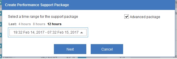 The default time window is the last 8 hours, so change it to the time range you would like to download (I changed it to the last 12 hours). Check “Advanced package”, to get additional data at 1 minute intervals (if available) and additional data on volumes. Then select the Next button.
