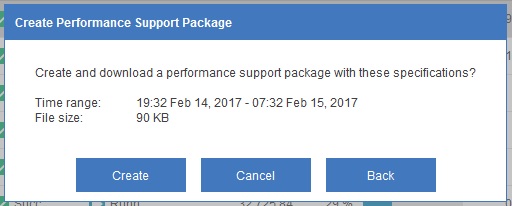 You will then be prompted to create and download the package. This window will give you the file size and time range covered. Click the Create button to download a compressed zip file.